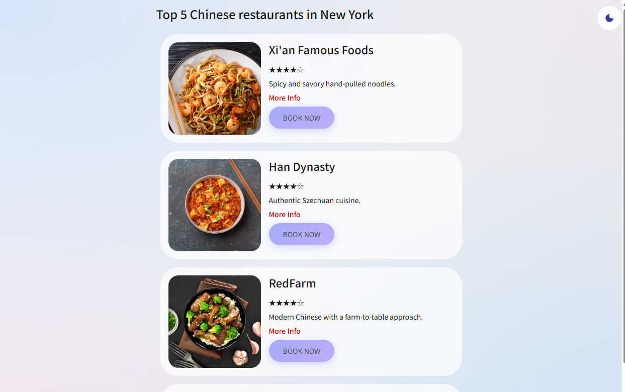 다시 실행하면 레스토랑 파인더 화면이 뜬다. http://localhost:5173