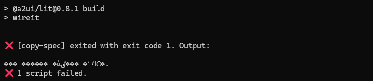 \a2ui\renderers\lit\package.json 파일의 문법 중 윈도우에서 맞지 않는 부분을 수정해 준다.