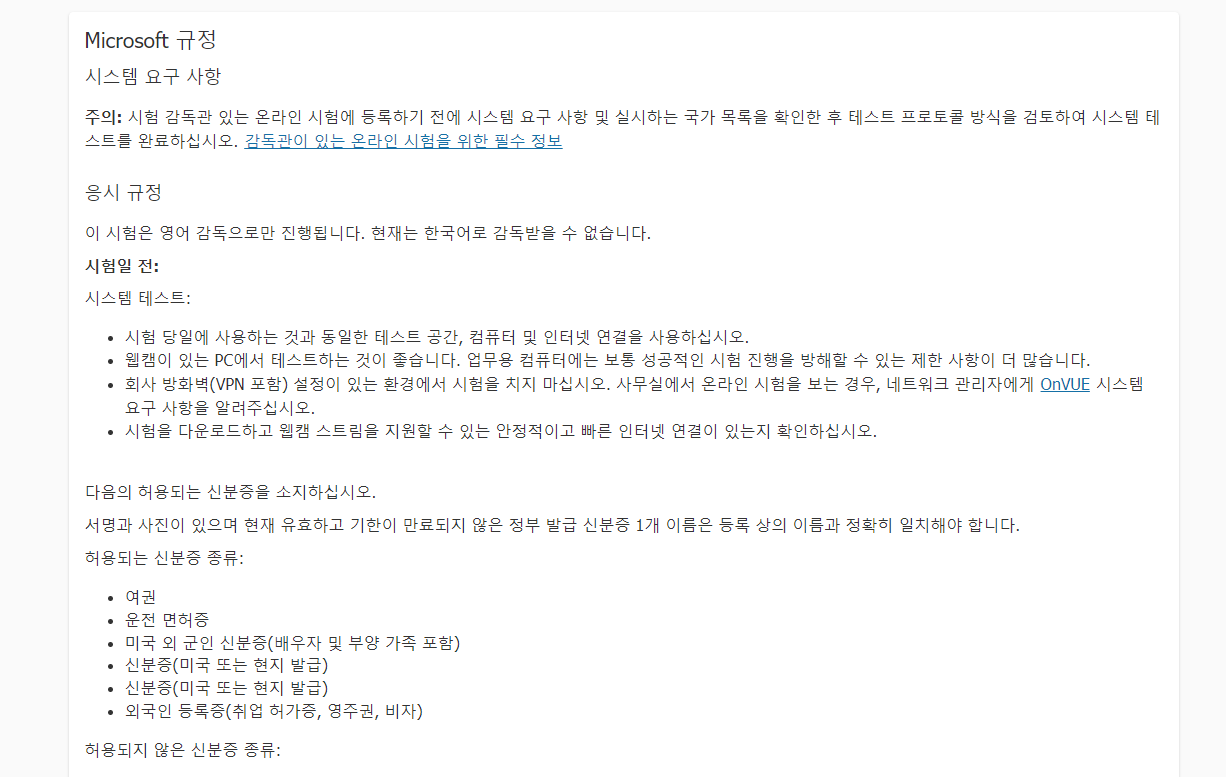 본 포스팅의 목적은 Micorsoft 인증시험을 온라인으로 처음 보는 분들을 위해 절차와 관련 화면을 사전 확인해 보는 데에 있다. 시험 문제나 난이도 등에 대한 내용은 거의 없다.