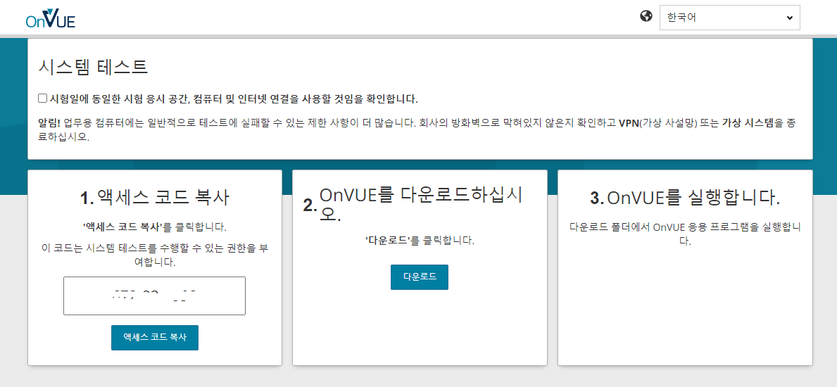 결제가 완료되면 시험 환경에 대한 점검을 하게 된다.