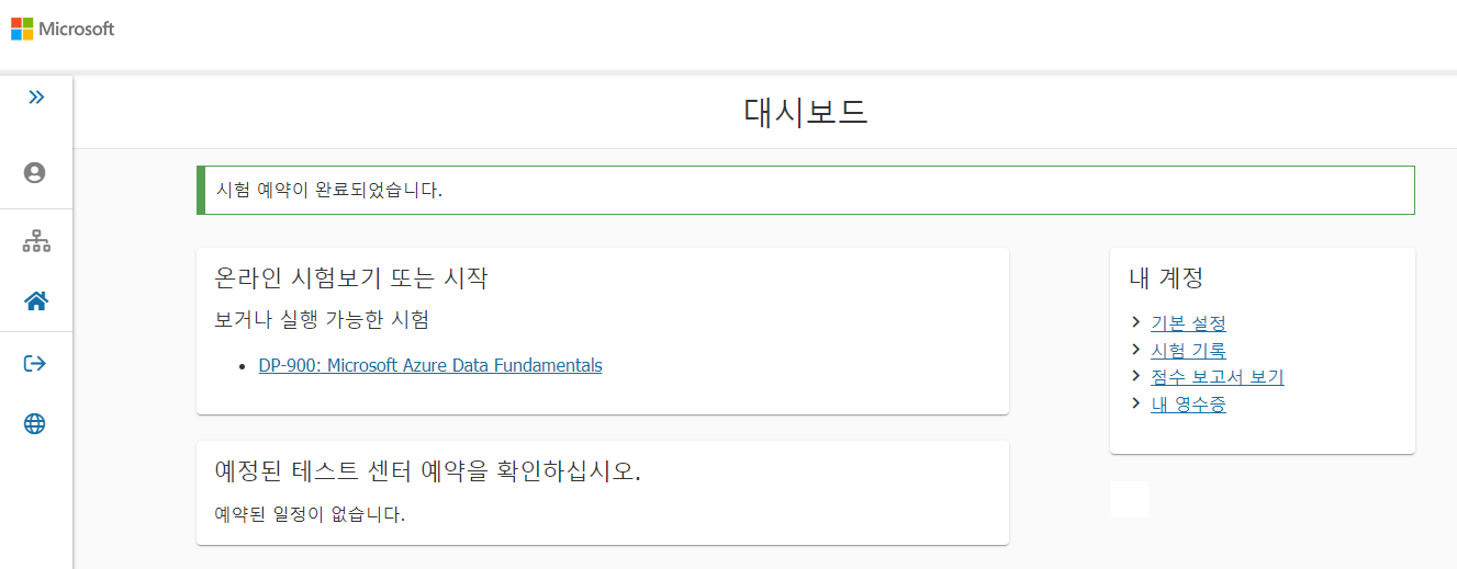 Pearson VUE 사이트의 대시보드에서도 예약된 시험 정보를 확인할 수 있다.