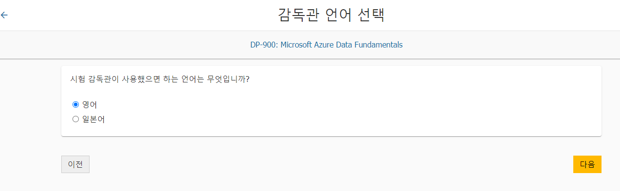 시험감독관의 언어를 선택하는데, 선택권이 영어와 일본어 밖에 없다. 아마 대부분이 영어를 선택할 것이다.