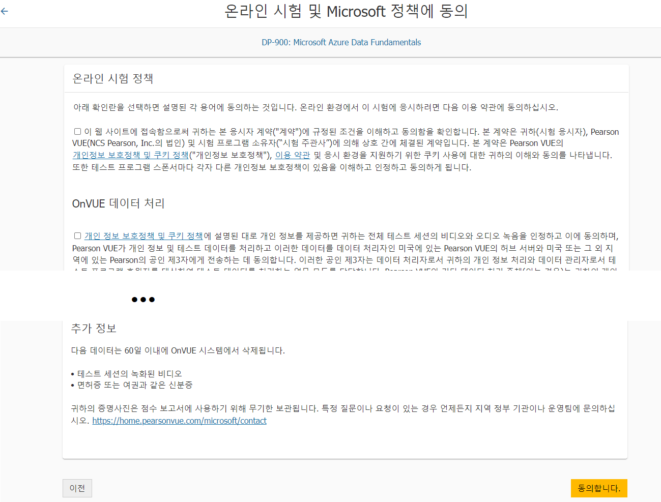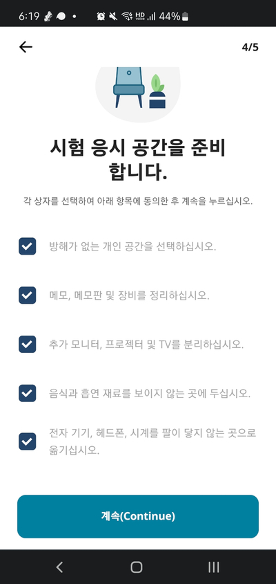 시험 정책 동의 화면에서는 모든 체크박스에 체크를 하면 된다.
