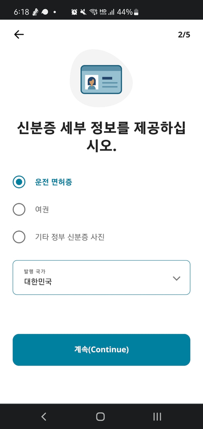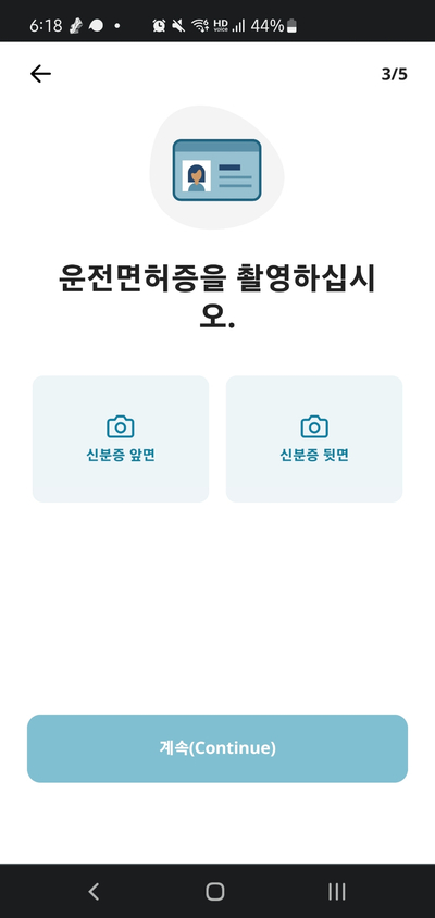다음은 신분증 사진을 찍는다. 여권도 찍어 봤는데 한손으로 여권을 펴고 다른 손으로 찍기가 다소 불편하다.