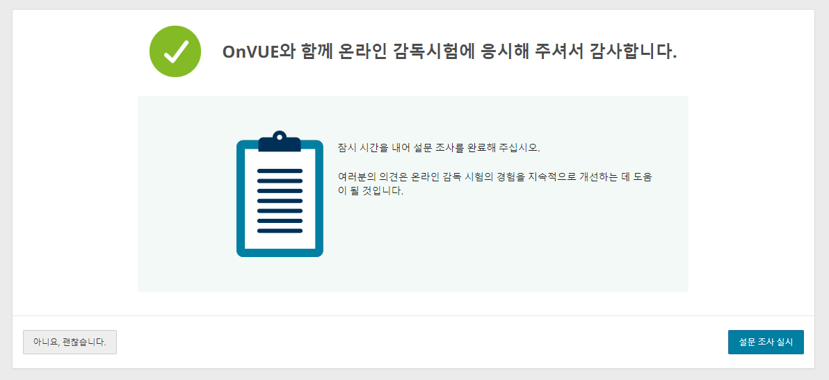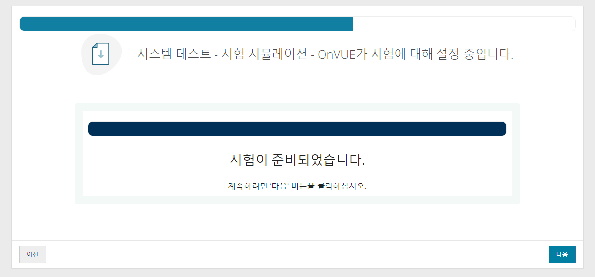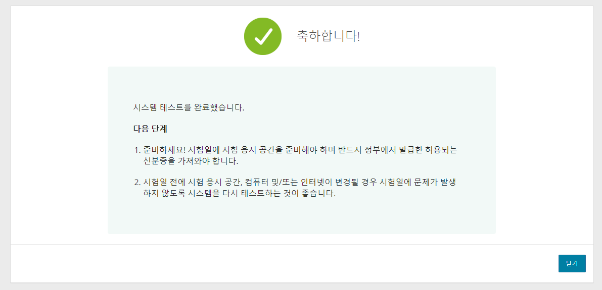 End Exam 버튼을 눌러 테스트를 마치면 아래와 같은 화면으로 전환되며 모든 사전 준비가 끝난다.