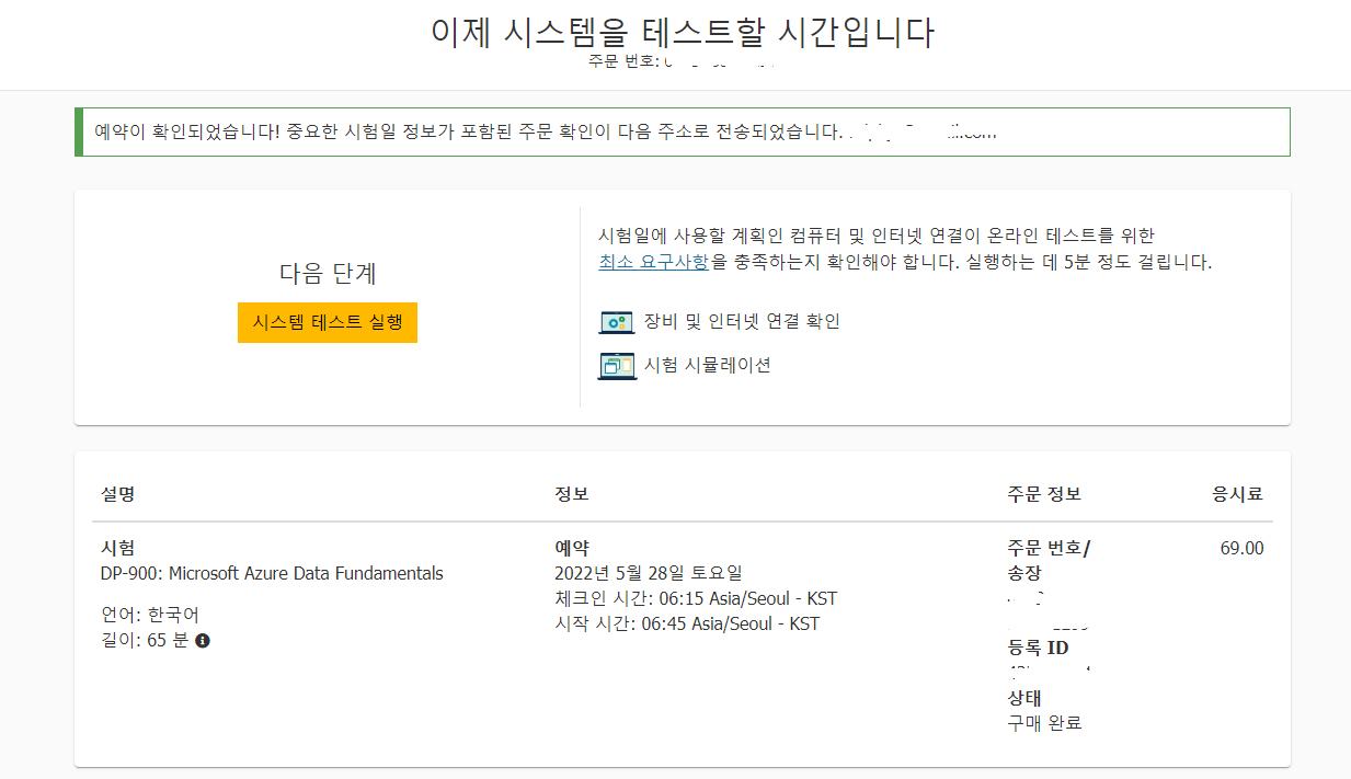결제를 하고 나면 시험 예약이 되었다는 메일을 받게 된다.